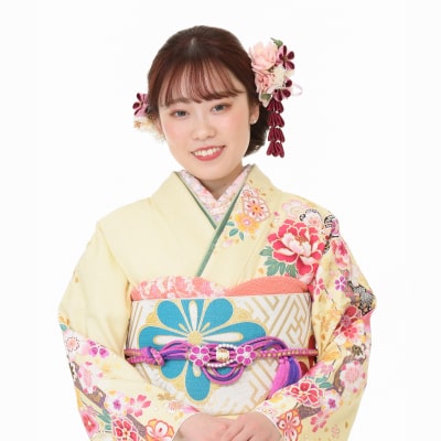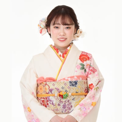 | フルセット内容 | 振袖/袋帯/帯締/帯揚げ/重ね衿/衿芯/草履・バッグ/刺繍衿/長襦袢/肌着(着物スリップ)/帯板/三重仮紐/帯枕/伊達締2本/腰紐5本/コーリンベルト/足袋 振袖着用に必要な物がすべて揃った安心のフルセットです。 |